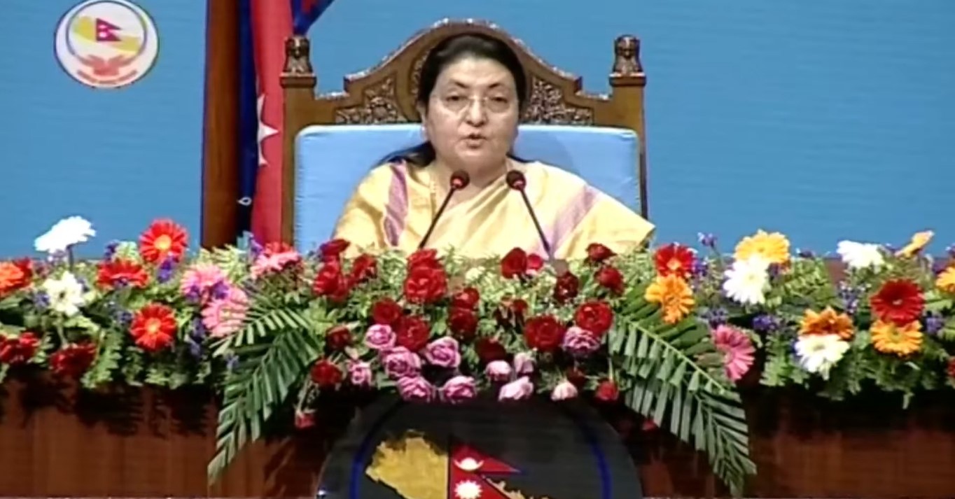 काठमाडौं– आउँदो आर्थिक वर्ष २०७९/८० का लागि संसदमा सरकारकाे नीति तथा कार्यक्रम प्रस्तुत भएको छ । राष्ट्रपति विद्यादेवी भण्डारीले सङ्घीय संसद्को संयुक्त बैठकमा नीति तथा कार्यक्रम प्रस्तुत गर्नुभएको हो ।