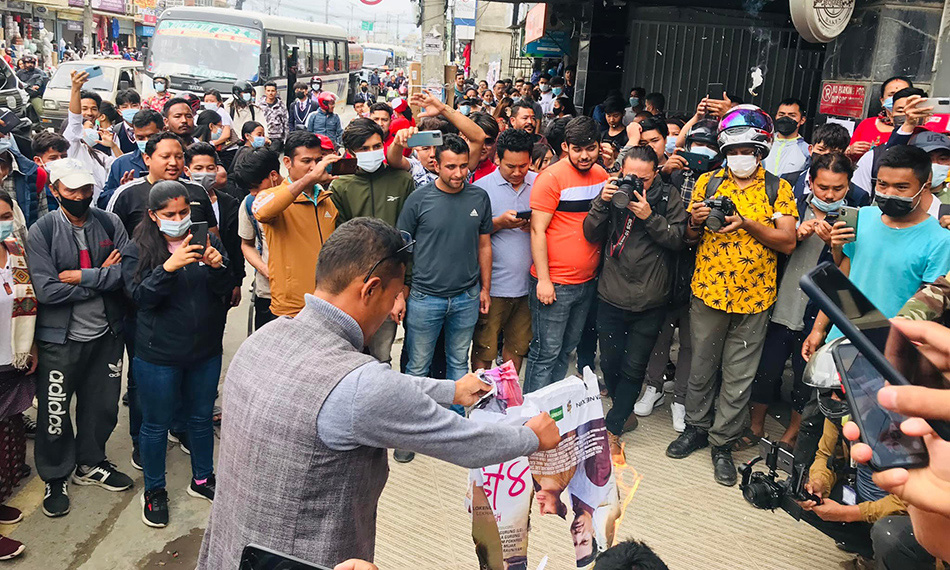‘कबड्डी ४’ की नायिकाविरुद्ध केएल टावर अगाडि प्रदर्शन, फिल्मको पोष्टर जलाइयो