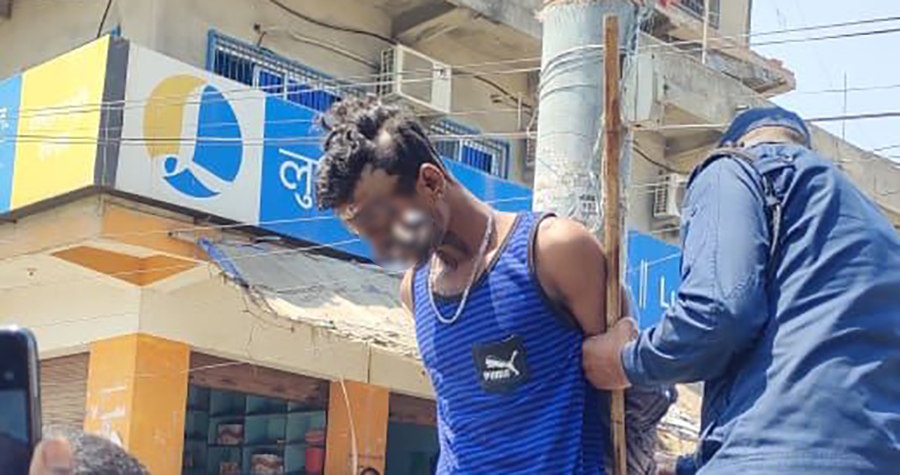 ज्याला माग्दा मजदुरलाई अमानवीय व्यवहार ठेकेदारले चोकमा बाँधेर मोसो दले