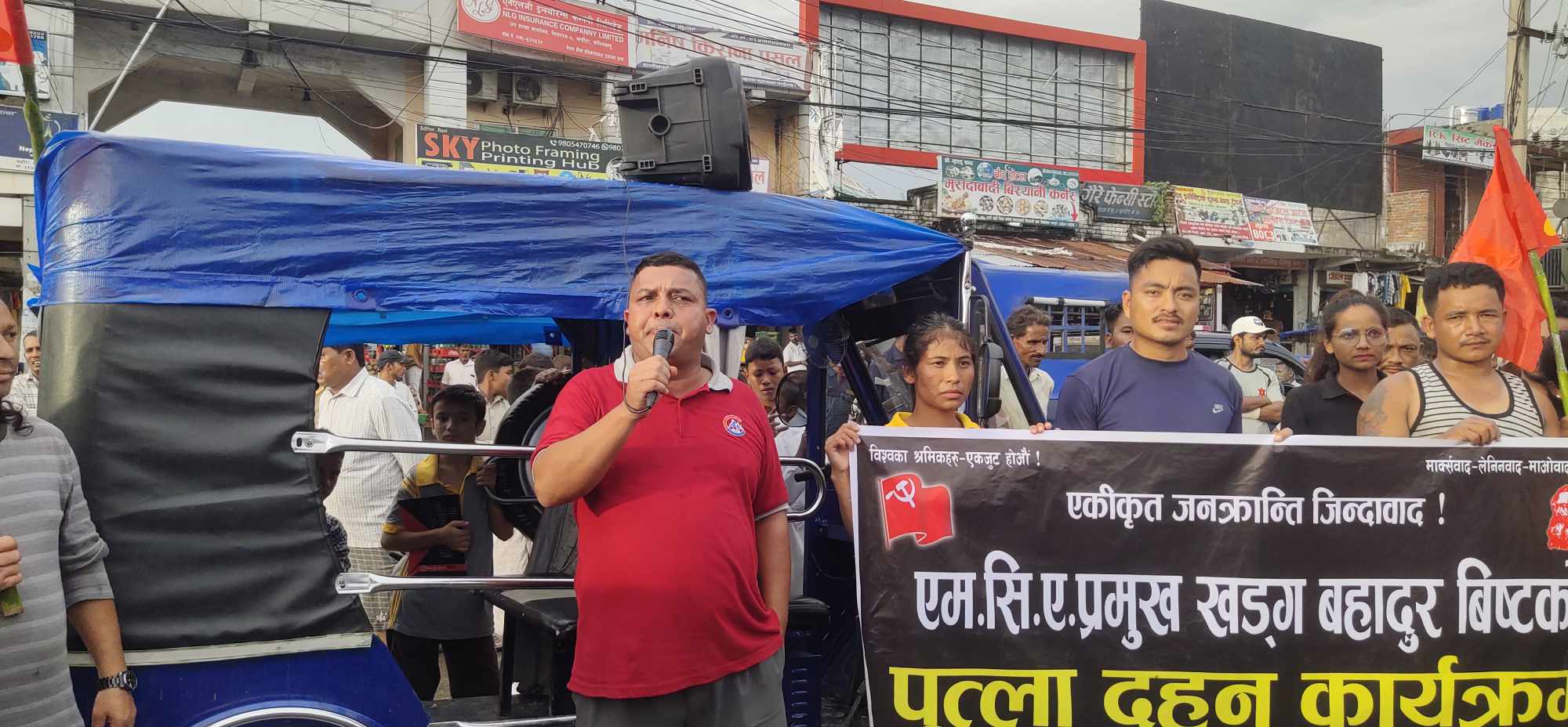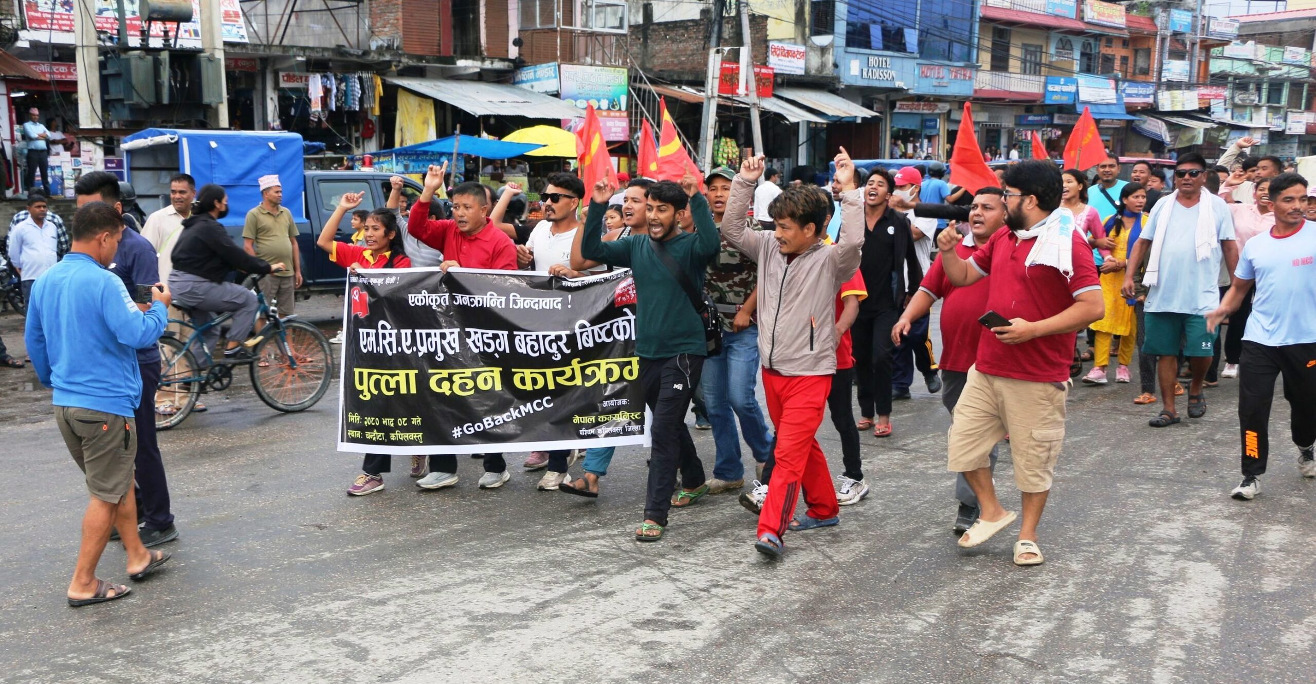 नेपाल कम्युनिस्ट पार्टी (विप्लव) द्धारा एमसिए अध्यक्ष बिष्टको पुत्ला दहन