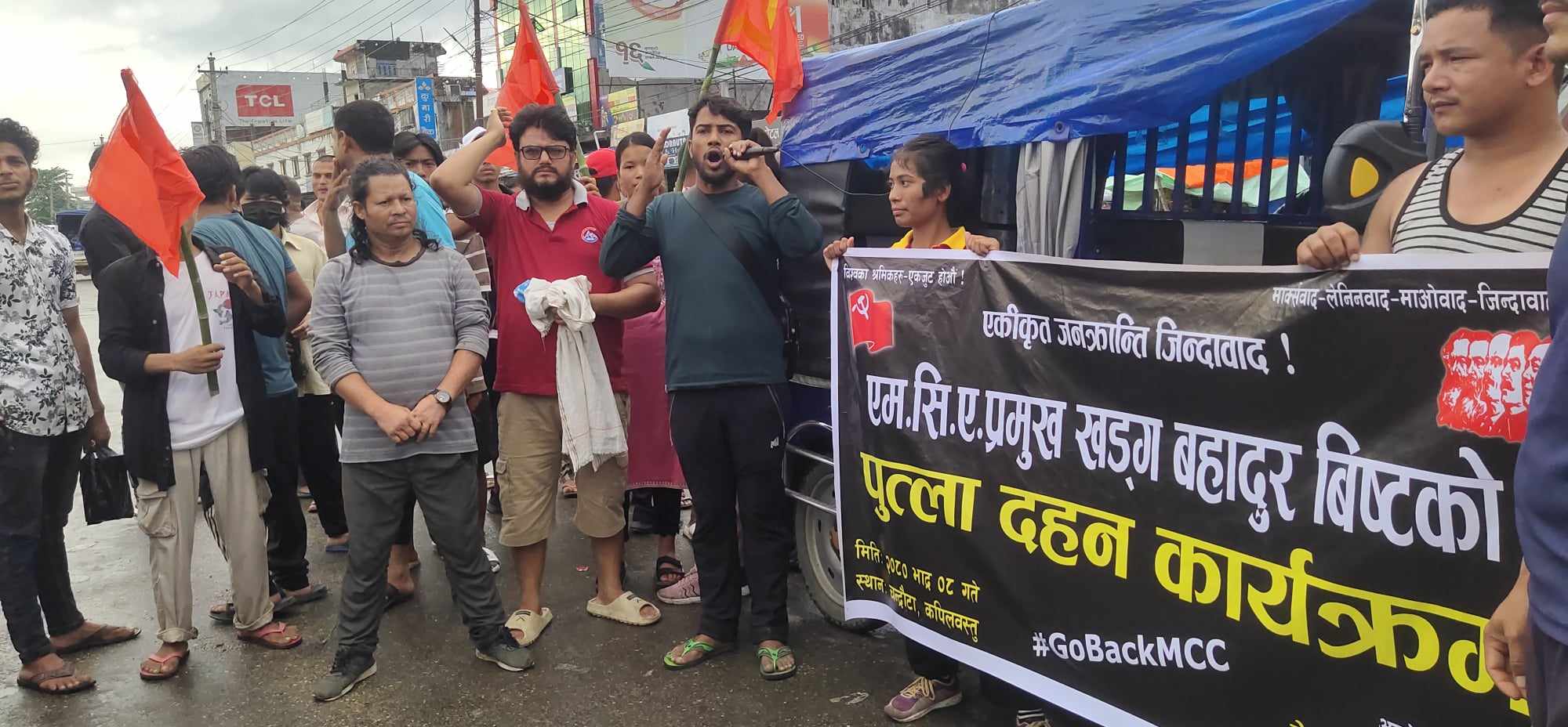 नेपाल कम्युनिस्ट पार्टी पश्चिम कपिलवस्तु अध्यक्ष हेमन्त चौधरीको नेतृत्वमा पुत्ला दहन गरिएको हो ।