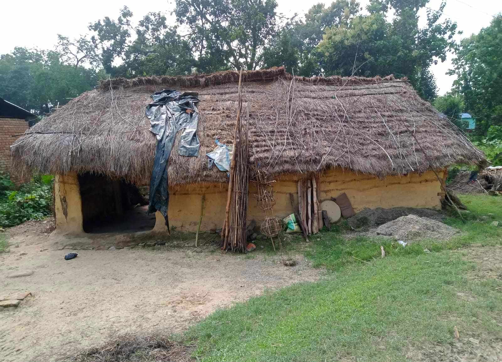 कपिलवस्तुको विजयनगर गाँउपालिका वडा नं १ गुगौली बस्ने गुल्ले कोरीको खरले छाएको घर । तस्विरः सनिउल्ला धोबी