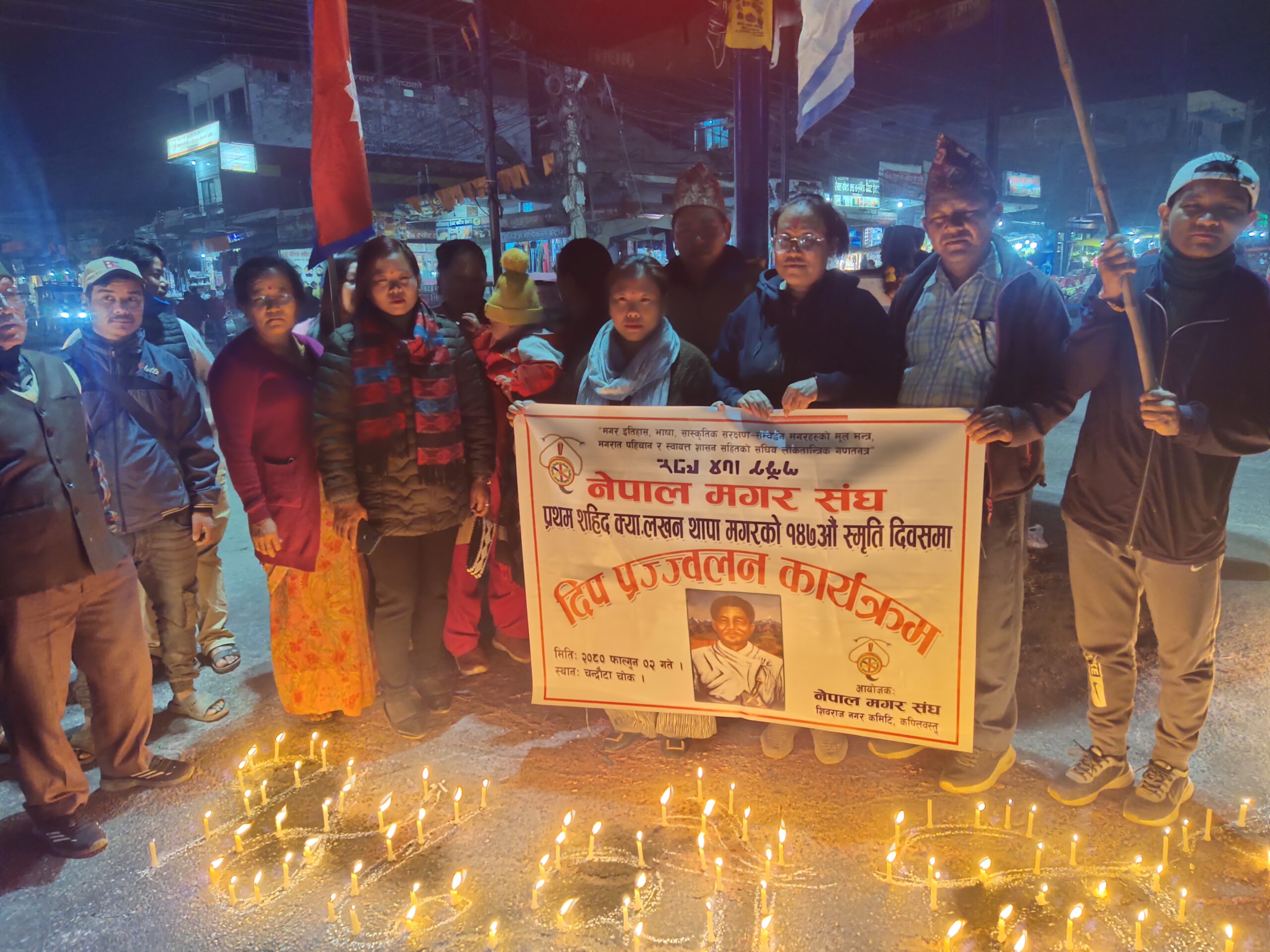 नेपाल मगर सघं शिवराज नगर समितिको आयोजनामा कपिलवस्तुको चन्द्रौटा चोकमा दिप प्रज्वलन कार्यक्रम सम्पन्न भएको हो ।