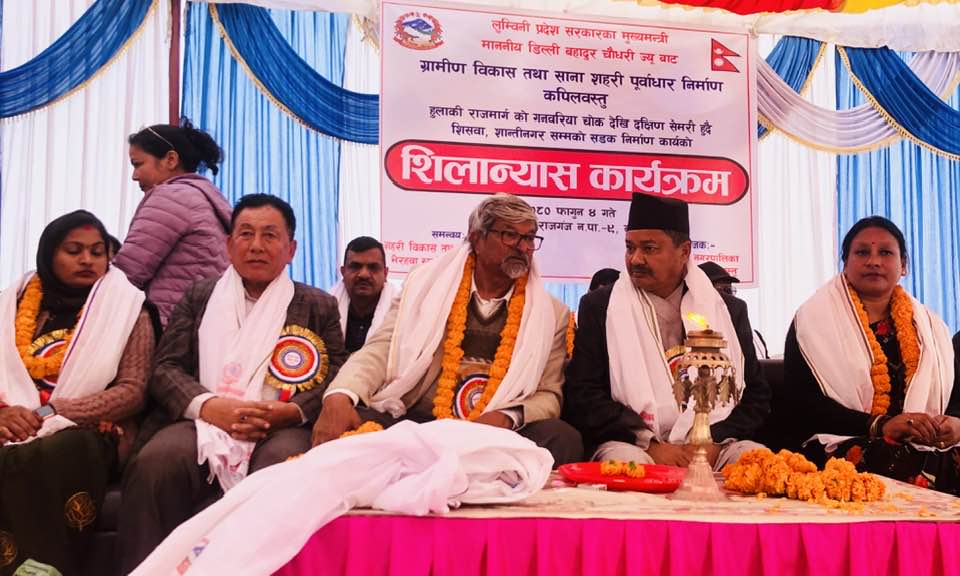 कपिलवस्तुको महाराजगंज नगरपालिकाको सडक लुम्बिनी प्रदेस सरकारका मुख्यमन्त्री माननीय डिल्ली बहादुर चौधरीले शिलान्यास गर्नु भएको छ ।