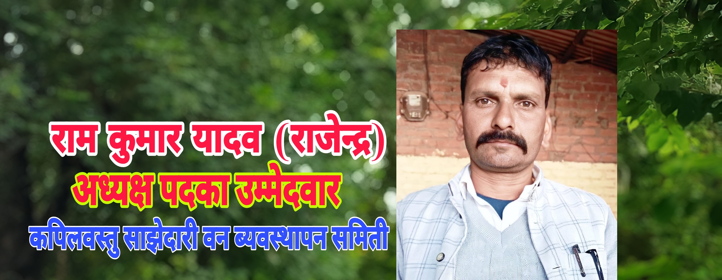 कपिलवस्तु साझेदारी वन व्यवस्थापन समितिको अध्यक्ष पदमा राम कुमार यादव (राजेन्द्र) ले उम्मेदवारी दिनुहुने भएको छ ।