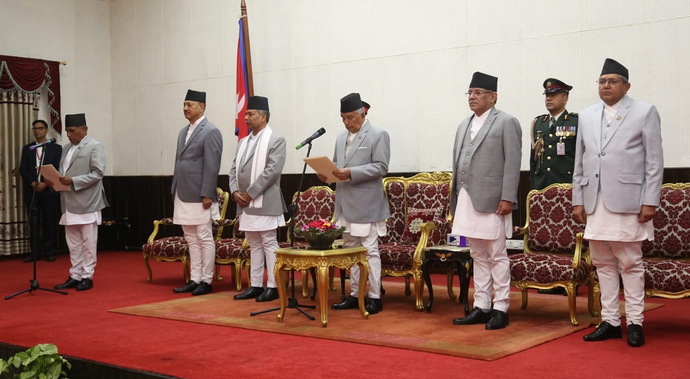 राष्ट्रिपति कार्यालयमा आयोजित शपथ ग्रहण समारोहमा प्रधानमन्त्री पुष्पकमल दाहाल ‘प्रचण्ड’, उपराष्ट्रपति रामसहायप्रसाद यादव, प्रतिनिधिसभाका सभामुख देवराज घिमिरेलागायतका उच्च पदस्थ व्यक्तित्वहरु उपस्थित हुनुहुन्थ्यो ।