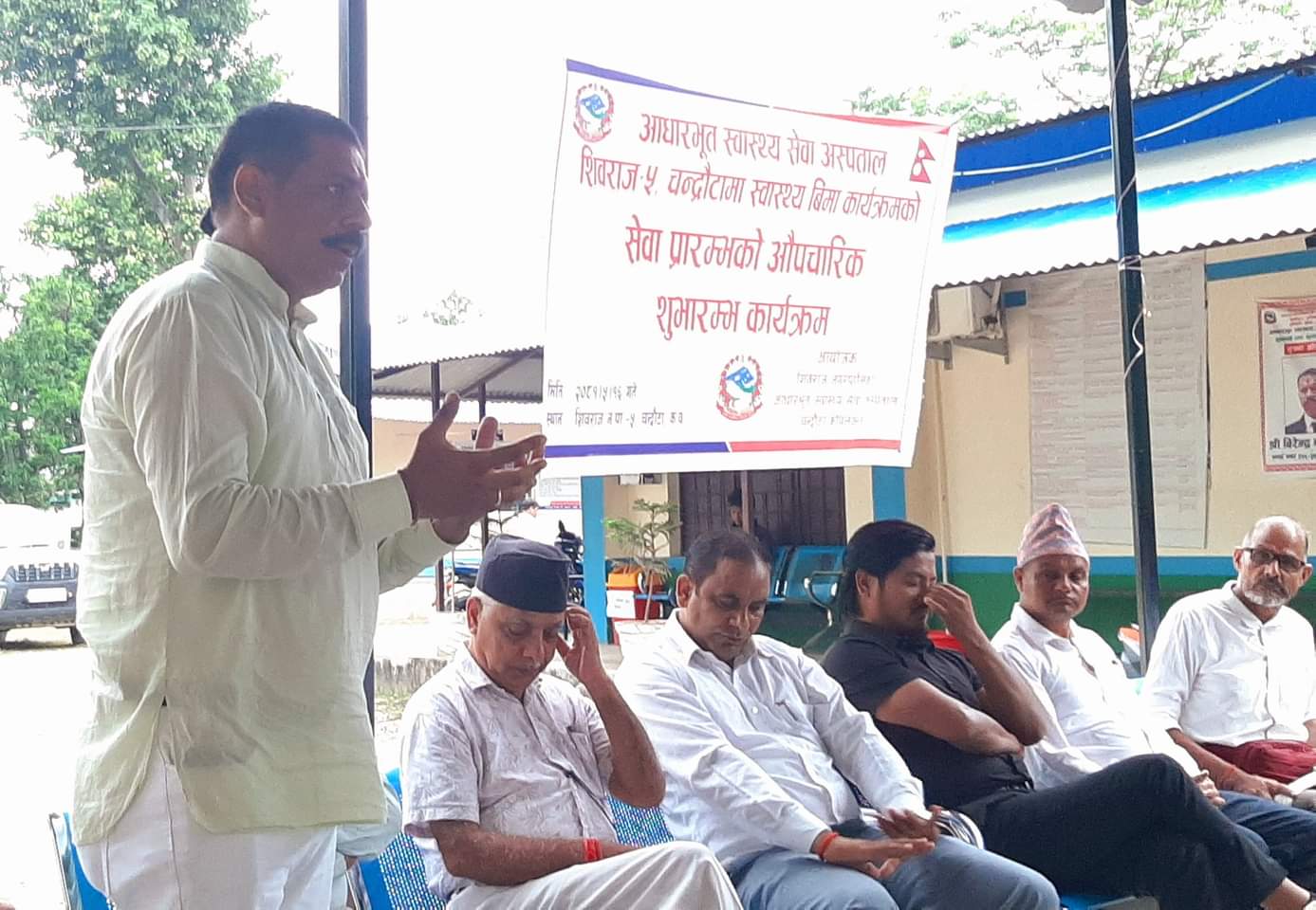 कपिलवस्तुको शिवराज नगरपालिका ५ चन्द्रौटामा रहेको शिवराज आधारभूत स्वास्थ्यसेवा अस्पतालमा स्वास्थ्य बिमा कार्यक्रमको सुरुवात गरिएको छ शिवराज नगरपालिकाका नगरप्रमुख अजय थापाले स्वास्थ्य बिमा कार्यक्रम सेवा प्रारम्भको औपचारिक शुभारम्भ गर्नुभएको छ ।