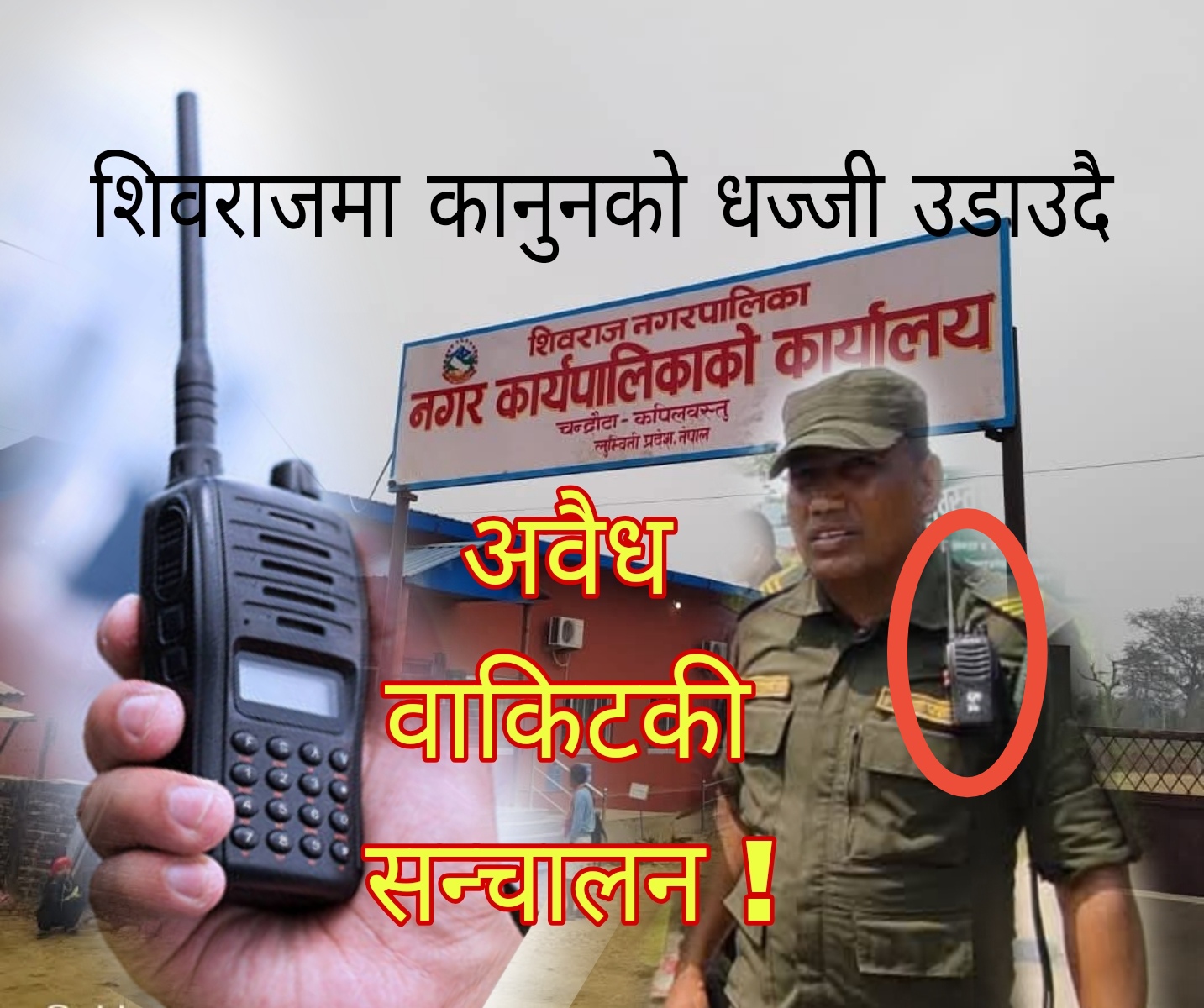 कपिलवस्तुको शिवराज नगरपालिकाले सूचना तथा सञ्चार प्रविधि मन्त्रालय, सन्चार महाशाखाबाट कुनै अनुमति नलिई नगर प्रहरीलाई वाकिटकी वितरण गरी सञ्चालनमा ल्याएको छ ।