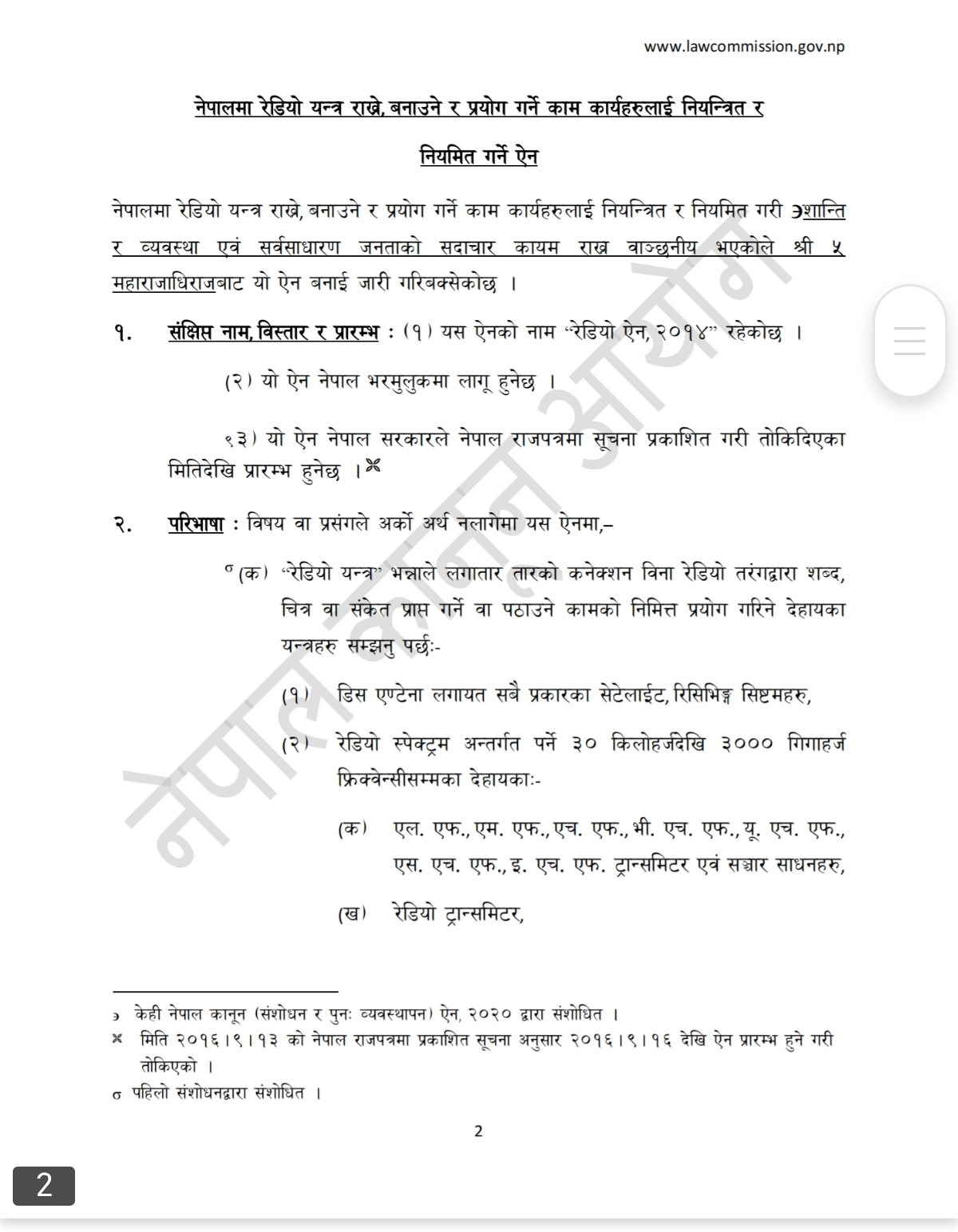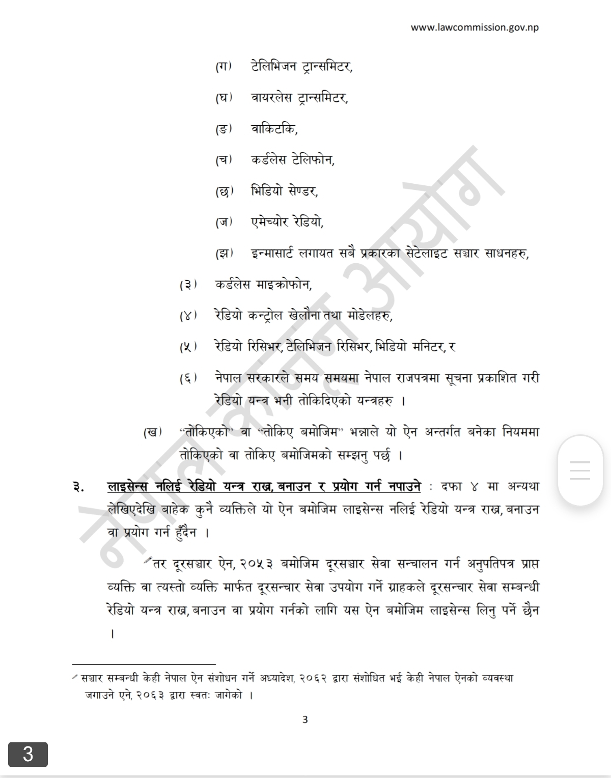 यसरी अनुमति विना सञ्चार उपकरण सञ्चालन गर्नु कानुनी रूपमा पूर्णतः निषेध छ । रेडियो ऐनको २०१४ को बुदा ३ र ४ अनुसार, रेडियो संचार उपकरण सञ्चालन गर्नुअघि स्वीकृति लिनैपर्छ ।
