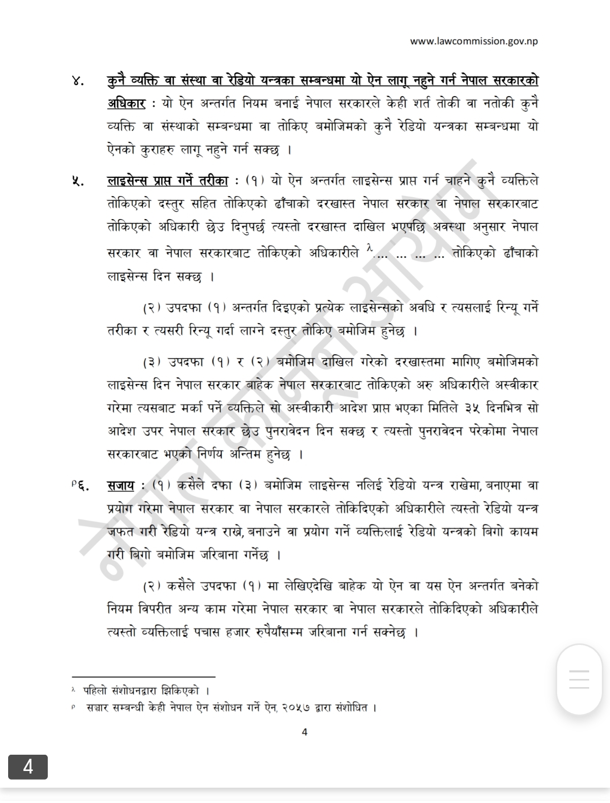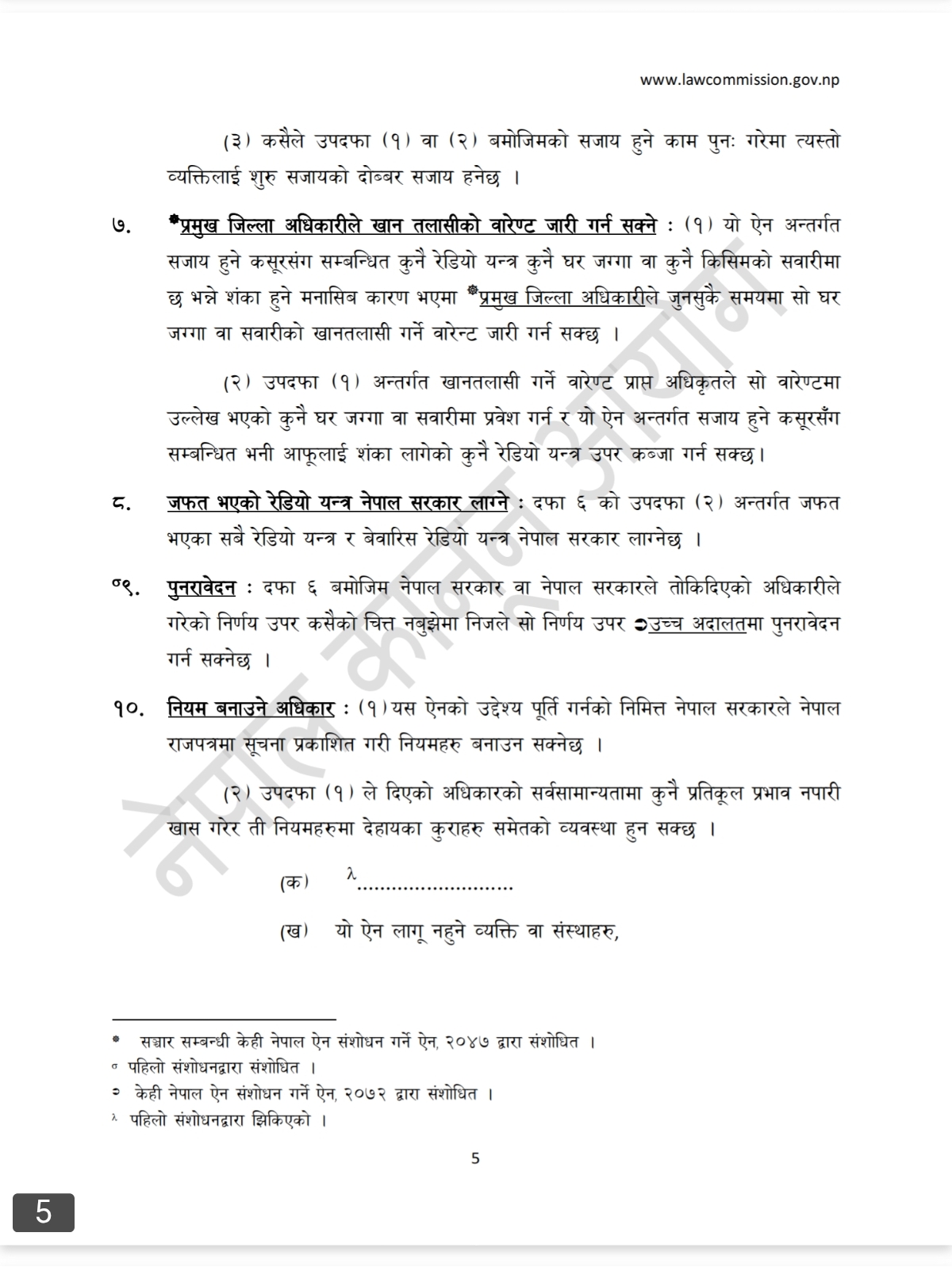 बुदा ५ अनुसार, उल्लंघन भएमा उपकरण जफत गर्नुका साथै उपकरण मूल्य बराबर जरिवाना लाग्न सक्छ ।