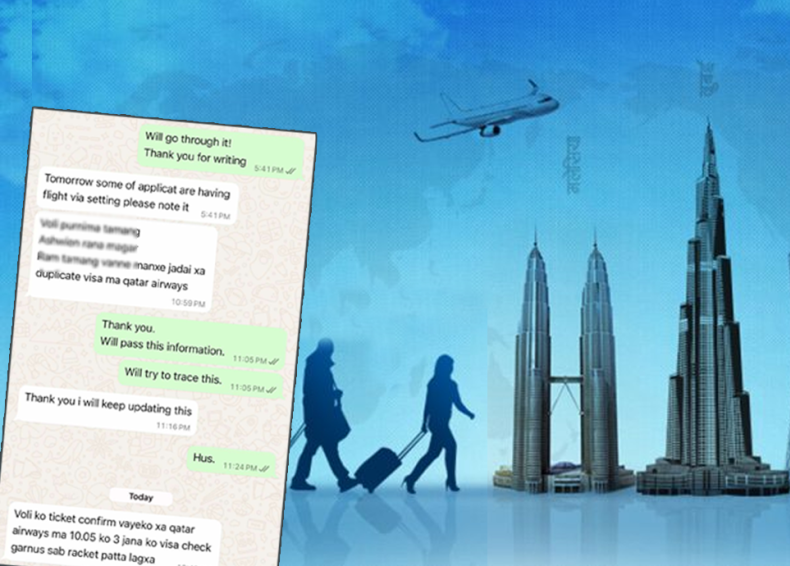 भिजिट भिसाका नाममा भएको असुली प्रकरणलाई लिएर अख्तियारले छानबिन गरिरहेको थियो । संसद्मा गृहमन्त्री रमेश लेखकलाई जवाफदेही बनाउन भन्दै प्रतिपक्षी दलको अवरोध जारी थियो । त्यहीबेला फूलकुमारी तामाङ, निमा मगर र दिनेश तामाङ चाहिं भिजिट भिसामा विदेश उड्ने तरखरमा थिए ।