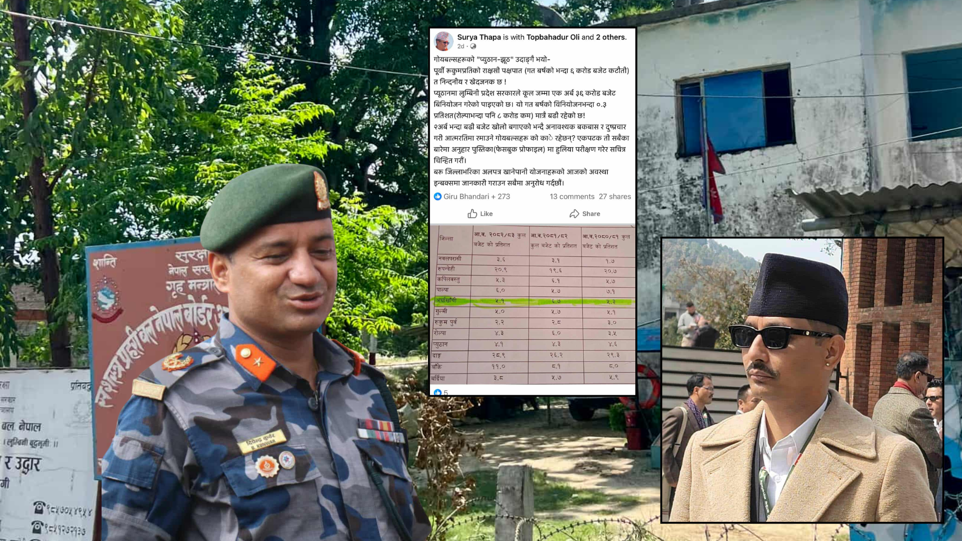 कांग्रेस सभापतिका प्रमुख स्वकीय भानु देउवाका बहिनी ज्वाईंलाई रिझाउन लुम्बिनीको प्रदेश बजेट दुरुपयोग भएको छ । परराष्ट्र मन्त्री आरजू देउवाको जोड बलमा लुम्बिनीको मन्त्री बन्न सफल प्यूठानका रोज राणा भनेर चिनिने शहरी विकास तथा खानेपानी मन्त्री सरोज थापाले देउवाका ज्वाईं तथा लुम्बिनीका सशस्त्र प्रहरी डिआइजी दिपेन्द्र कुँवरलाई रिझाउन प्रदेश बजेट बाँडेका हुन् । आ.व.२०८२/८३ को बजेट विनियोजनका क्रममा खानेपानी तथा शहरी विकास मन्त्रालयले चन्द्रौटास्थित विन्ध्यबासिनी मुख्यालयलाई ३ करोड ६५ लाख रकम उपलब्ध गराएको छ । मन्त्री थापाले डिआइजी कुँवरलाई सार्वजनिक कार्यक्रमहरुमा ज्वाईं नै भन्ने गरेका छन् ।