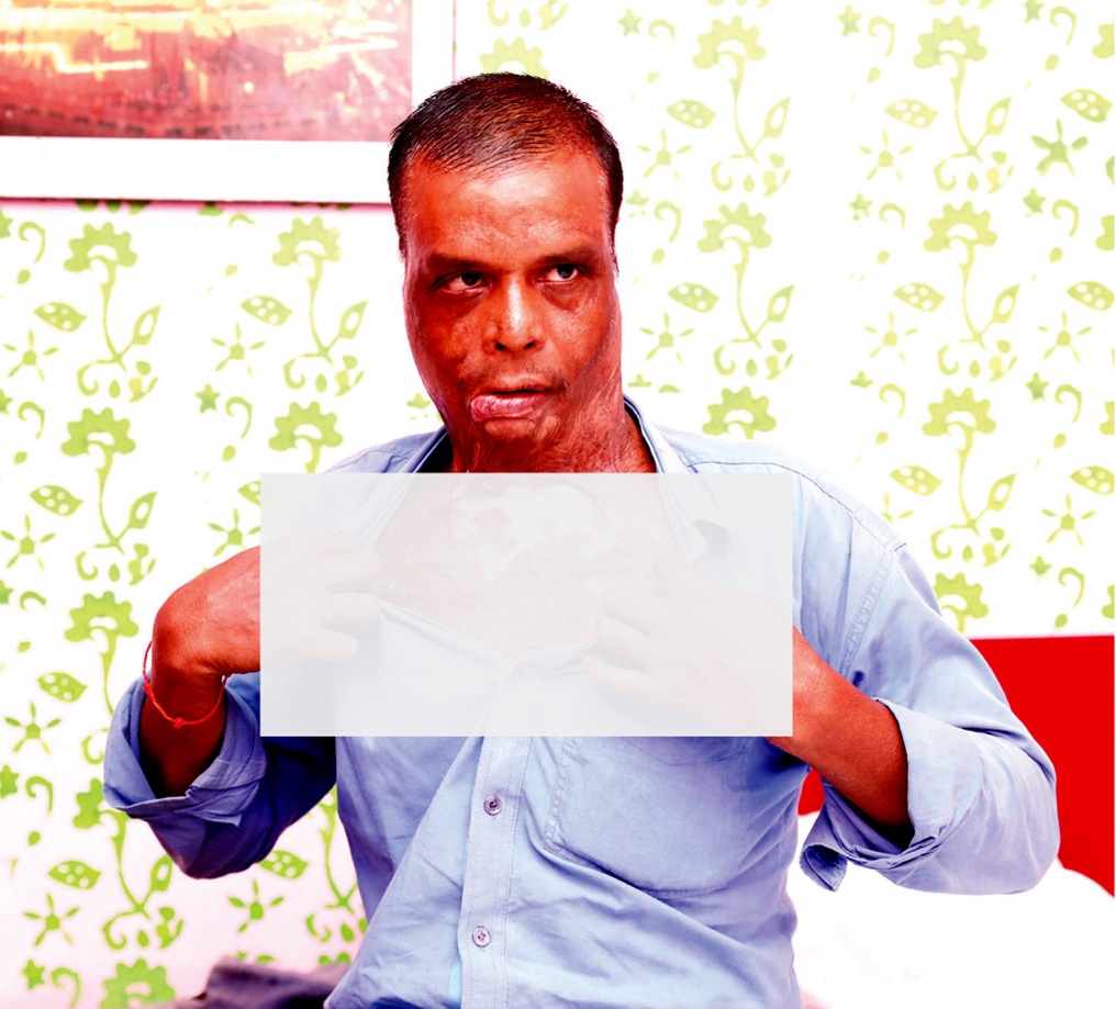 रौतहट बम विस्फोटको फेहरिस्त सार्वजनिक गर्न काठमाडौं आइपुगेका गौरीशंकर राम चमारको छातीको खत बीभत्स भएकाले छोपिएको हो । तस्बिर : ज्ञानेन्द्र कार्की/नयाँ पत्रिका