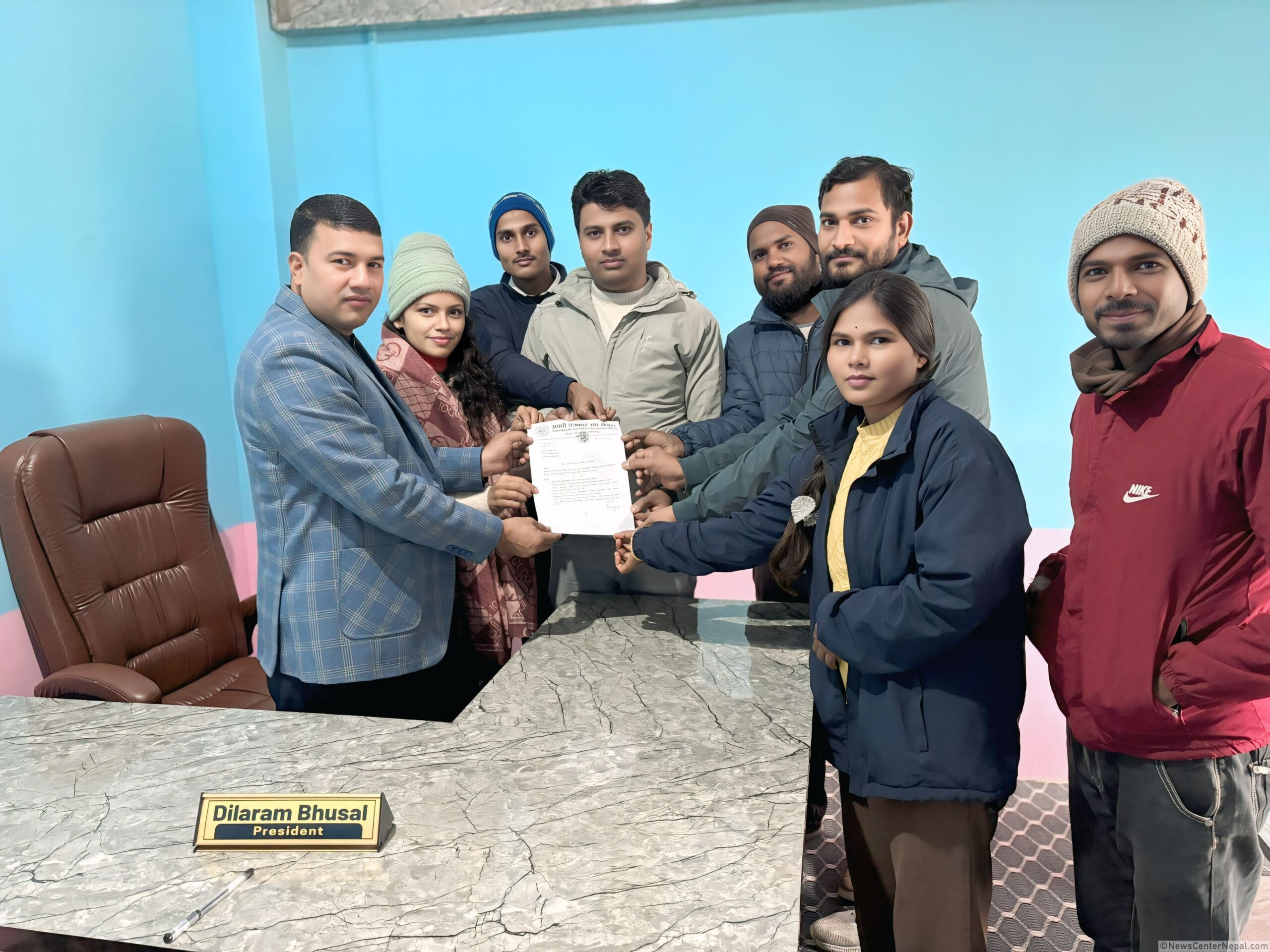 संघका अध्यक्ष मनीषकुमार गुप्ता नेतृत्वको टोलीले ५ बुँदे माग राख्दै पत्रकार महासंघ शाखा अध्यक्ष डिलाराम भुसाललाई तौलिहवास्थित शाखा कार्यालयमा ज्ञापनपत्र बुझाएको हो ।
