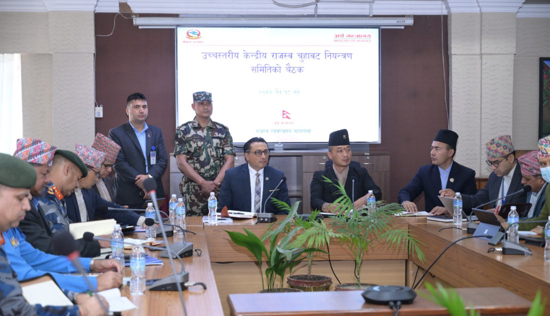 बिहीबार अर्थ मन्त्रालयमा अर्थमन्त्री डा. स्वर्णीम वाग्लेको अध्यक्षतामा बसेको केन्द्रीय राजस्व चुहावट नियन्त्रण समितिको बैठकले आजैका मितिदेखि नतिजामुखी कार्ययोजना लागू गर्ने निर्णय गरेको हो ।