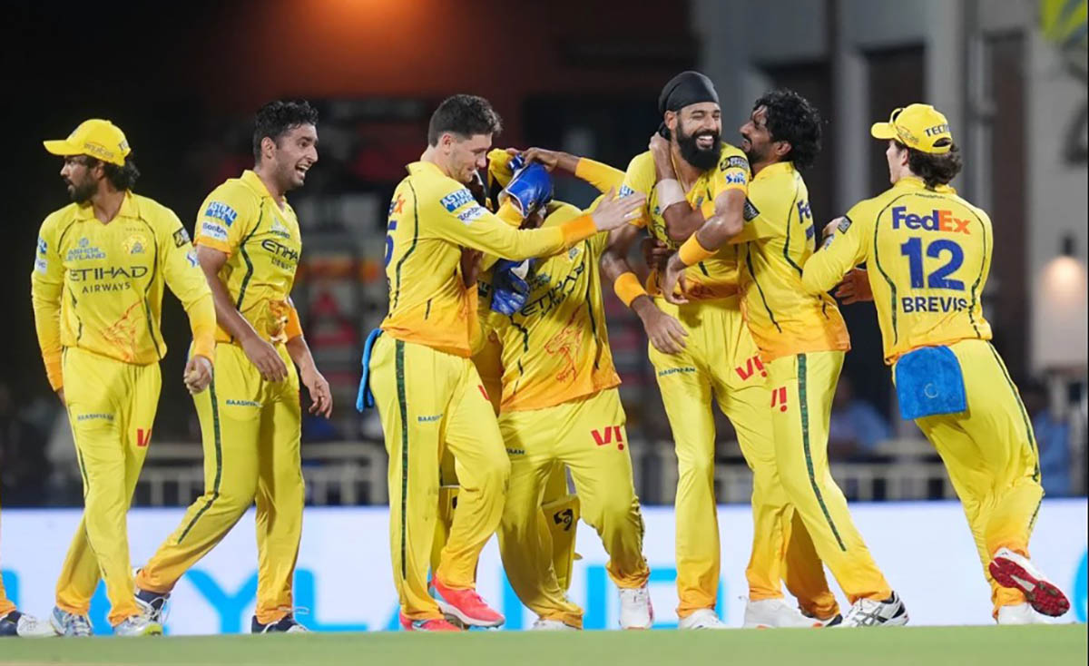 चेन्नाईका लागि सन्जु सामसनले विष्फोटक ब्याटिङ गर्दै मात्र ५६ बलमा अविजित ११५ रन बनाए । उनलाई अर्का ब्याट्सम्यान आयुष म्हात्रेले ३६ बलमा ५९ रन बनाए । शिवम दुबेले आक्रामक खेल्दै १० बलमा अविजित २० रन बनाए ।